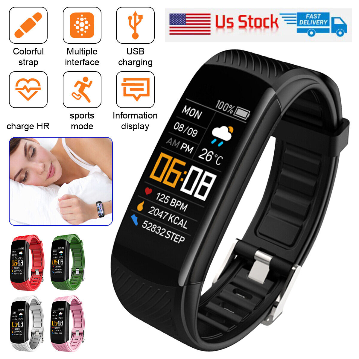 Sensors: Heart rate monitor, accelerometer, sleep tracker